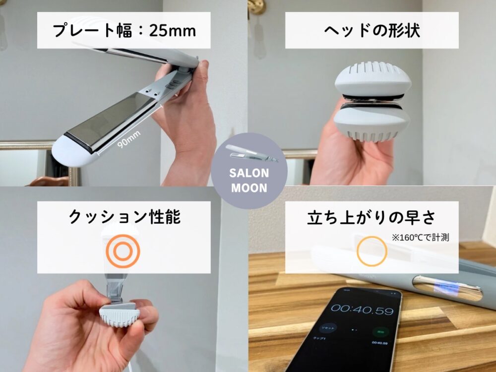 サロンムーンはプレートのクッション性も優れてる他、ピタッと噛み合わせもよく、しっかり髪をとらえてスタイリングしやすいです。
